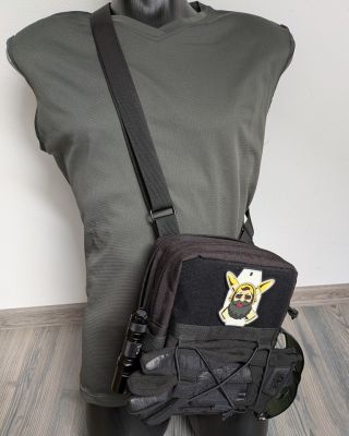 - Držák 12 x 5 cm se čtyřmi pružnými úchyty pro dva zásobníky, svítilnu a propisku
