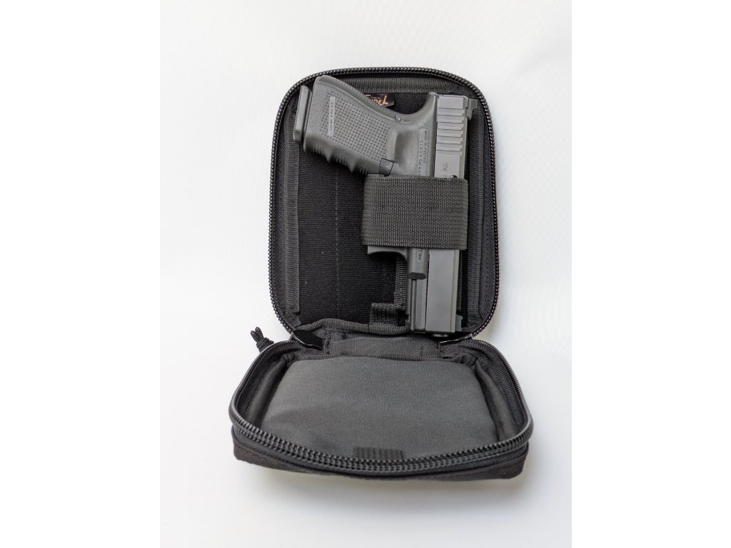 - Komora pro zbraň o vnitřním rozměru 19 x 14 x 4 cm s velur panelem, držákem zbraně a poutkem na Triggerguard