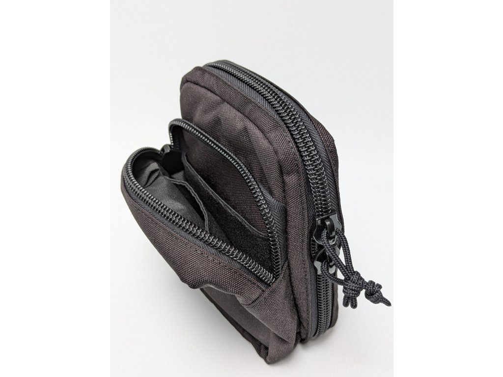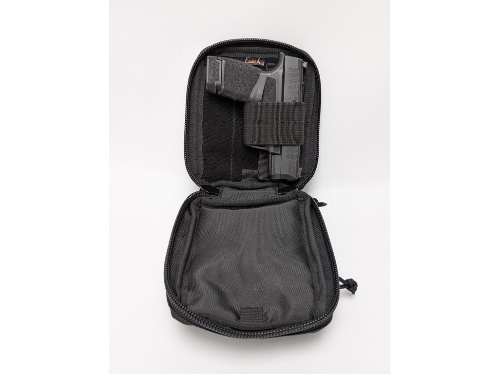 - Komora pro zbraň o vnitřním rozměru 17 x 13 x 3,5 cm s velur panelem, držákem zbraně a poutkem na Triggerguard (kryt spouště k nošení s nábojem v komoře) vhodná např. pro G 43, H 11, MP9 Shield, P 365 atd.