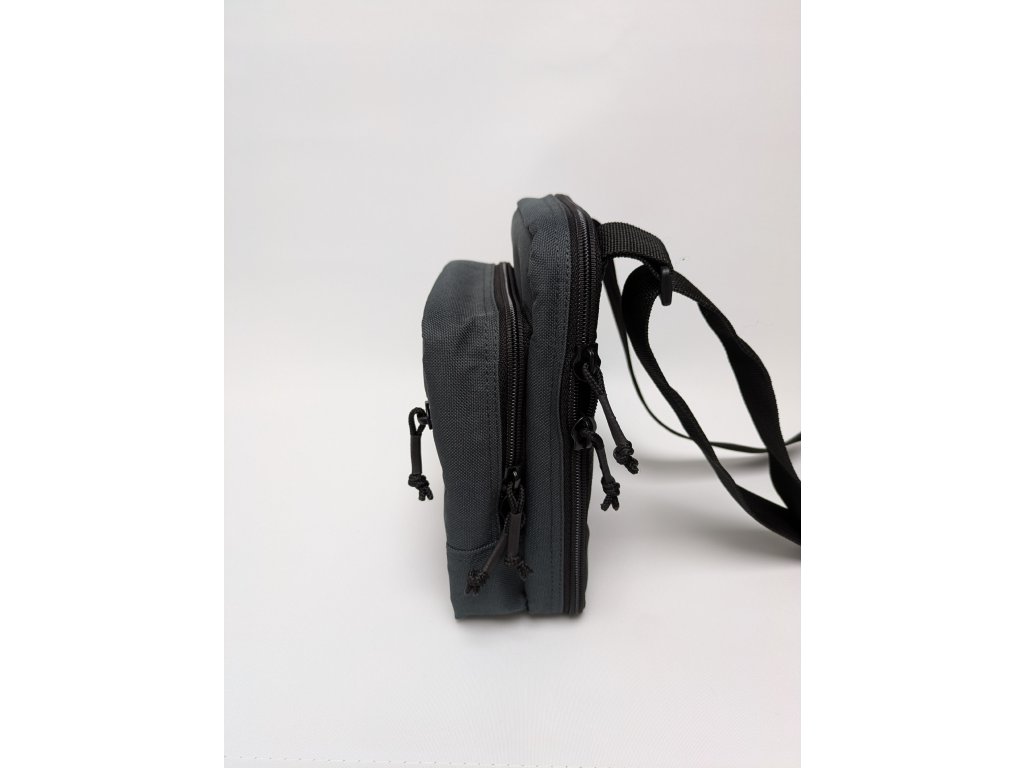 - Komora pro zbraň u těla o vnitřním rozměru 210x160x35 s velcro panelem , držákem na zbraň a zásobník, dole poutko pro Triggerguard (kryt spouště k nošení s nábojem v komoře) , nahoře 3x poutko pro navázání táhla. Na protější straně velur pro označení (nášivku).